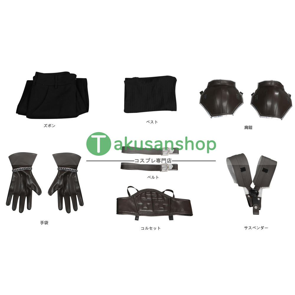 【セット内容】:ズボン、ベスト、肩鎧*2、コルセット、サスペンダー、手袋*2、ベルト*2