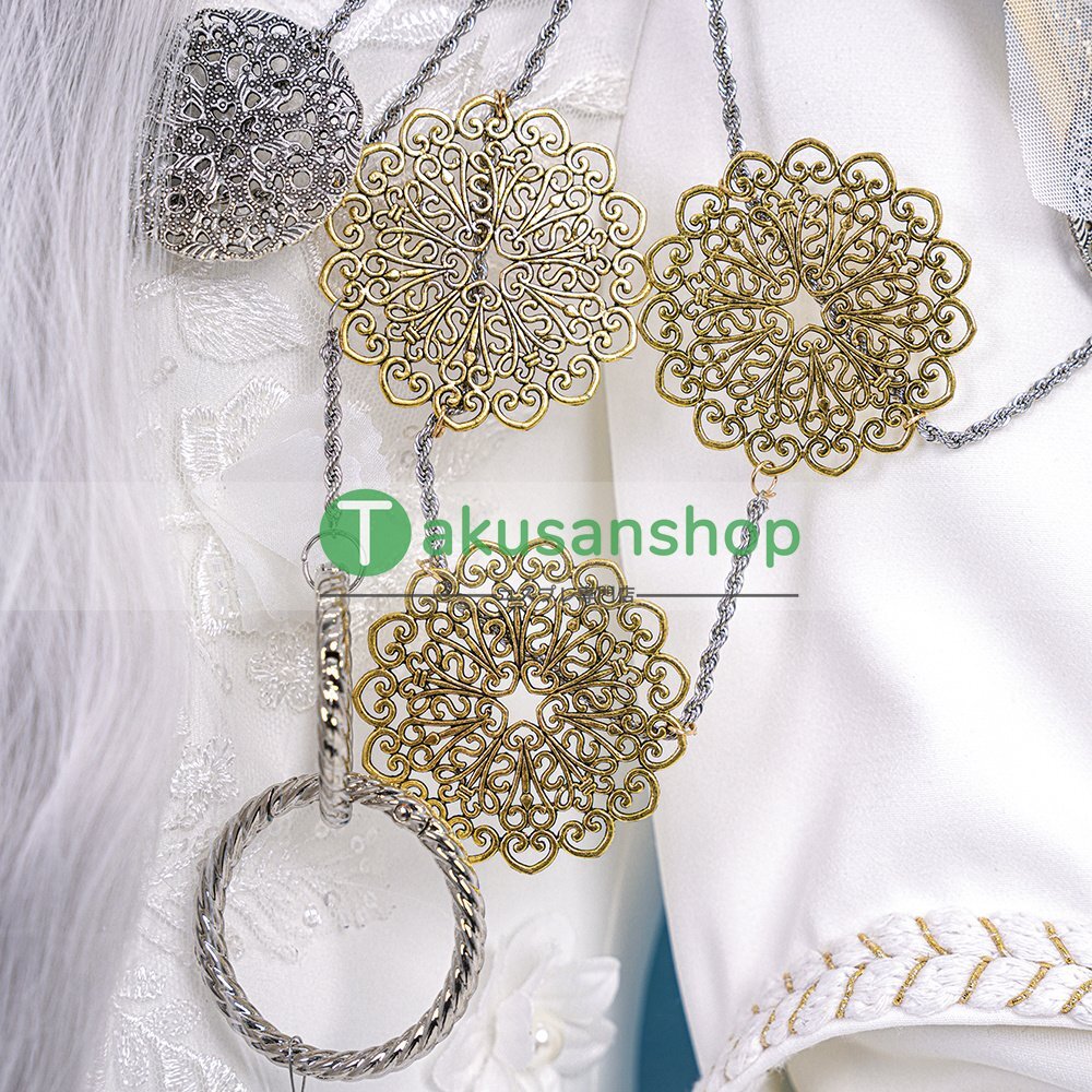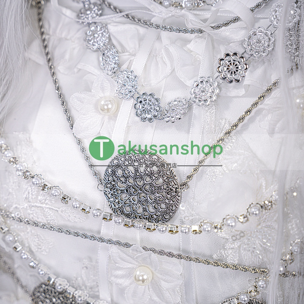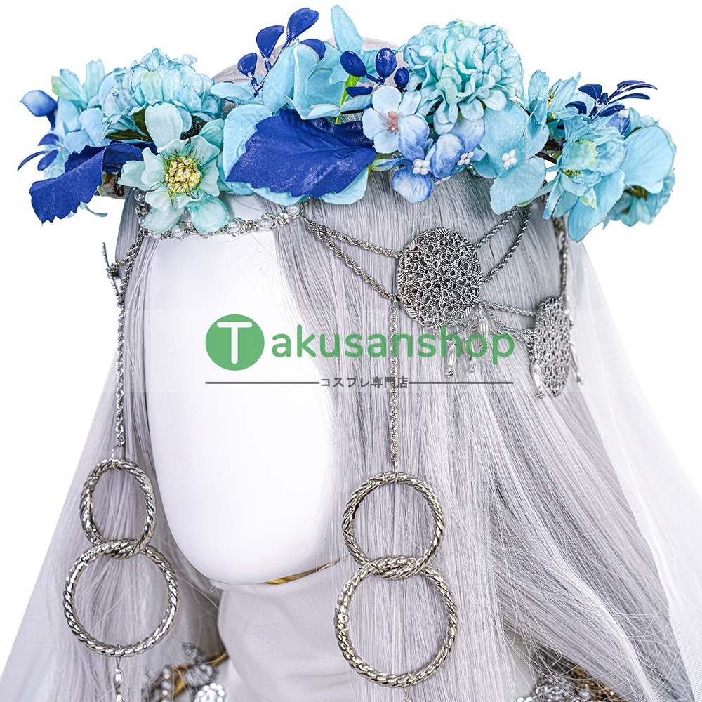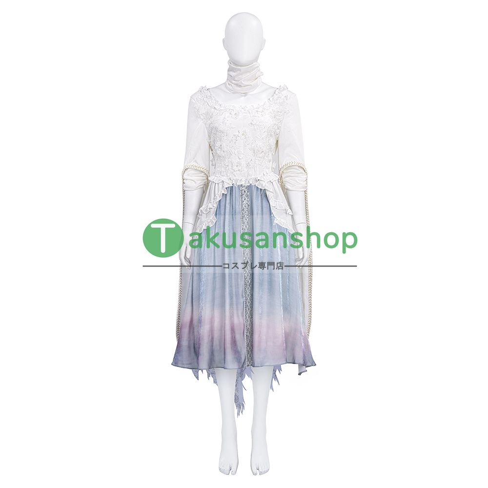 【セット内容】:ワンピース 、頭飾り、アームカバー*2、襟、花輪、マント、ネイル*2、チェーン*4、ズボン