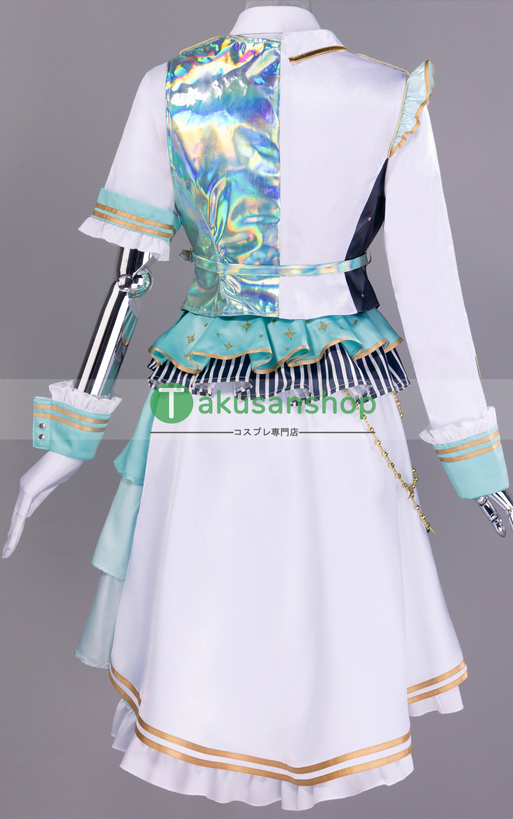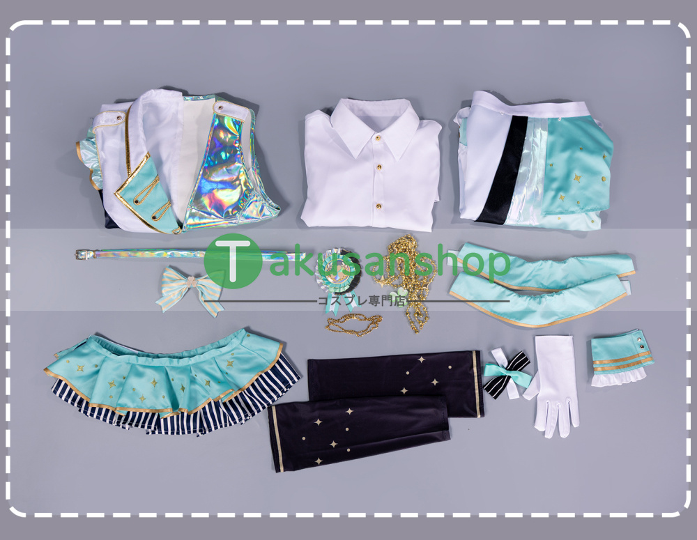 【セット内容】:ジャケット、シャツ、スカート、ベルト、リボン、腰飾り、手袋、リストバンド、バッジ、チェーン、ネックレス、レッグカバー*2、靴飾り*2、髪飾り